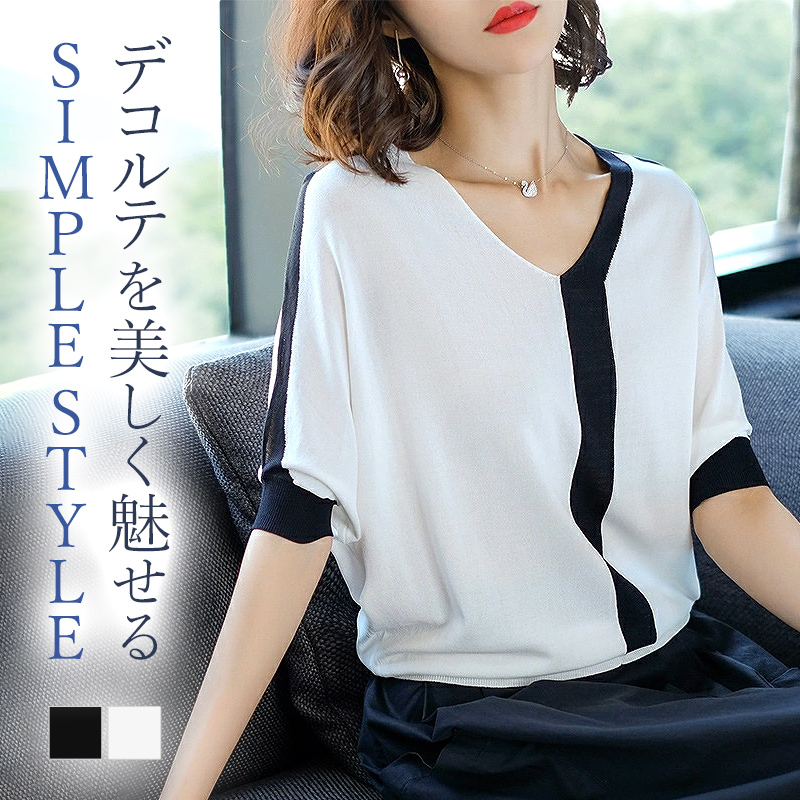 シンプルスタイルこそおしゃれさを追求♪深めのVネックでデコルテラインを美しく魅せる デイリーからオフィスカジュアルまで使える万能アイテム