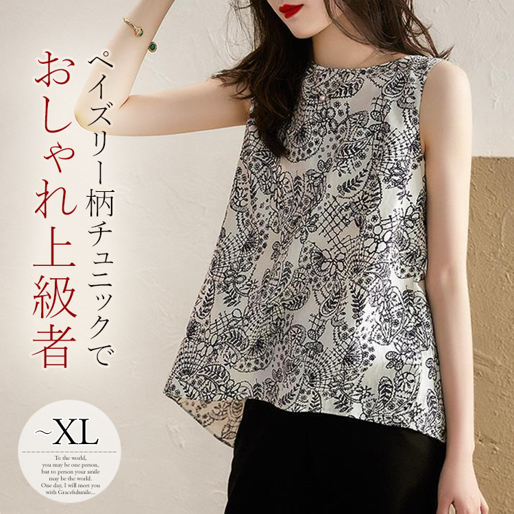 ペイズリーがおしゃれ上級者のカジュアルなチュニック☆フレアシルエットがウエスト、ヒップラインをカバーします♪