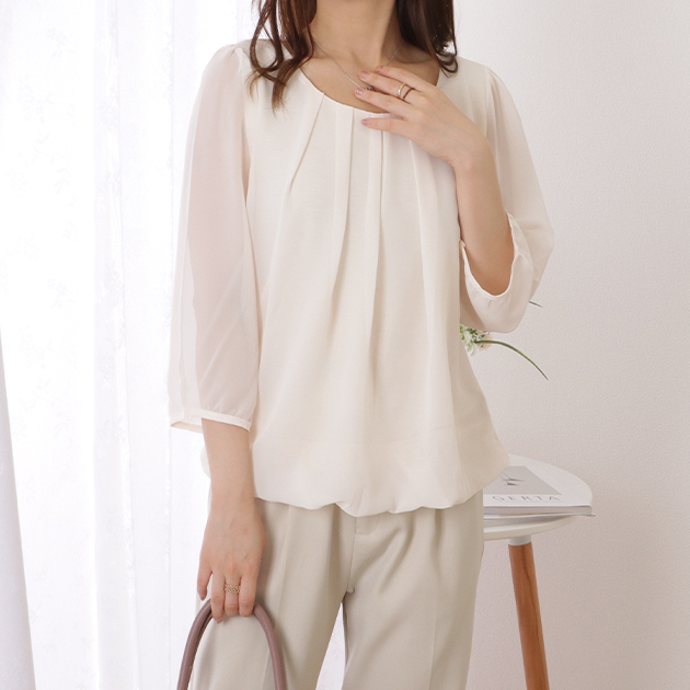 シフォンブラウス シアーブラウス ボリューム袖