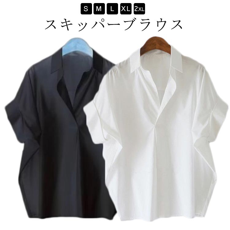 半袖シャツ ゆったり 白 お出かけ オフィスカジュアル ブルー ネイビー おしゃれ 五分袖レディースファッション トップス シャツ ブラウス