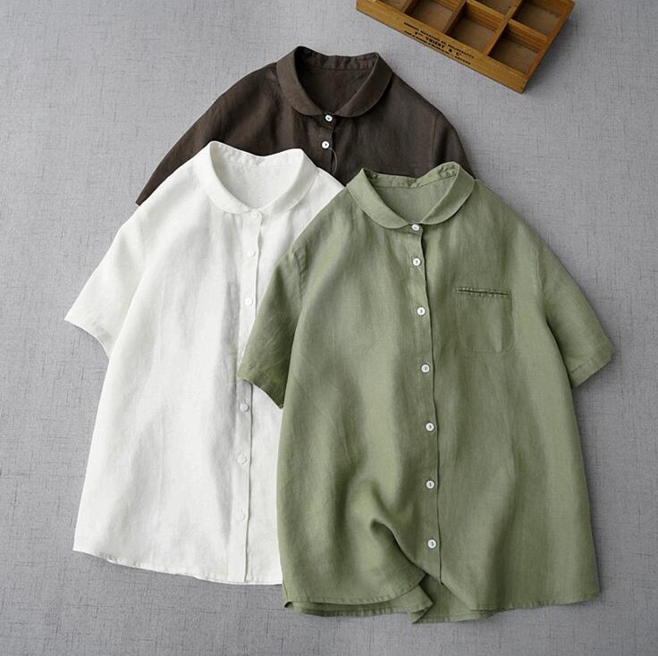 シャツ 半袖ブラウス シャツブラウス レディース ガーゼ チェック柄シャツ 夏 丸襟 シャツ 無地 ガーゼ シンプル 綿 半袖 コットン 通気