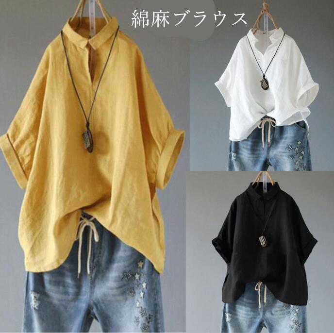 トップス レディース 五分袖 ブラウス シャツ ゆったり リネン 麻 大人 レディース 春 夏レディースファッション トップス シャツ ブラウス