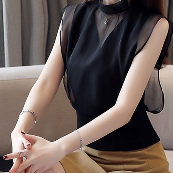 レディース シフォン シャツ ブラウス ノースリーブレース トップス 20代 30代 40代 12128