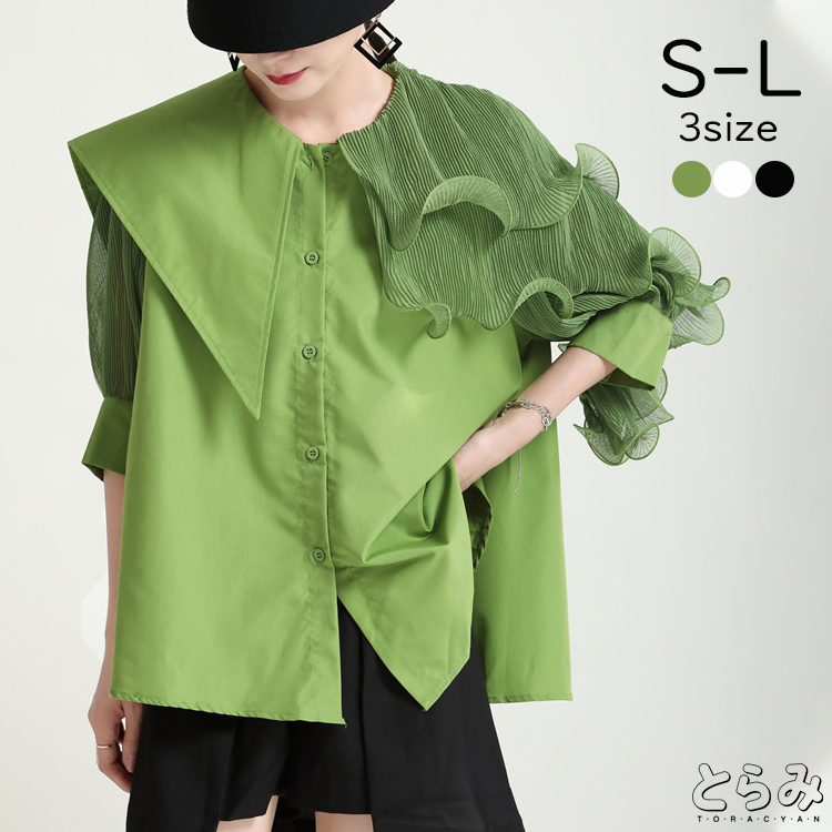 ビッグカラー ブラウス レディース 五分袖 アシンメトリー トップス 結婚式 パーティー 二次会レディースファッション トップス シャツ ブラウス
