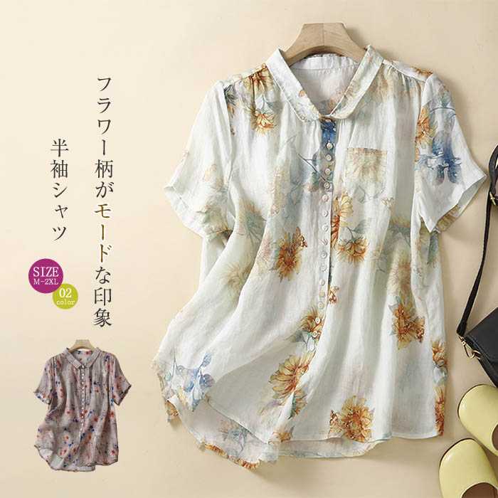 シャツ 夏 レディース 半袖 コットン トップス レディースシャツ レディーストップス 羽織り 半袖シャツ はおり 夏トップス ナチュラル なつ 薄手 柄シャツ 総柄 花柄 30代 40代 50代