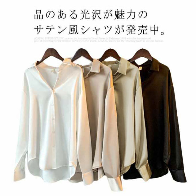 サテン風シャツ 光沢感 無地 オーバーシャツ オフィスカジュアル フェミニン フォーマル 通勤 お出かけ デート キレイめ 春 秋