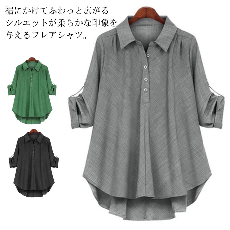 バックタックフレアシャツ トップス ブラウス 長袖 オーバーサイズ ボタン 羽織り マタニティ 大きめ シンプル オフィス 通勤 上品