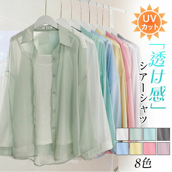 uvカット シャツ シースルー 接触冷感 程よい透け感で,着るだけで爽やか&こなれ感を演出するシアーシャツ 暑い夏にピッタリの人気アイテム クーラーで寒い時はさらっと着れる