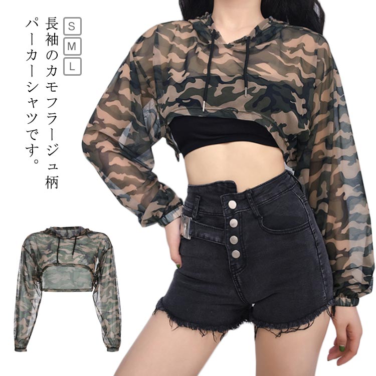 クロップド丈 ダンスウエア 長袖シャツ ダンス服 フード付きレディースファッション トップス シャツ ブラウス