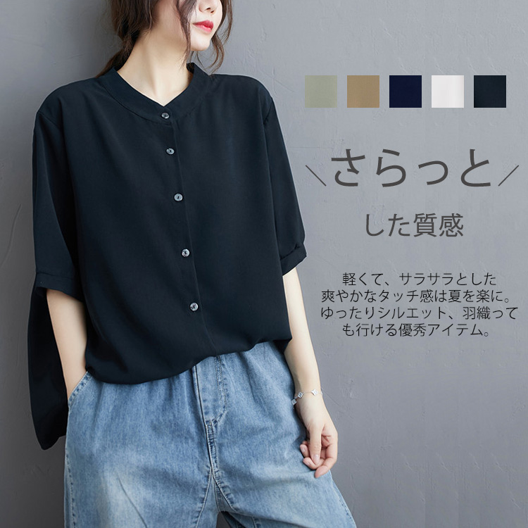 着心地がいいフレアシャツブラウス 可愛い ブラウス 柔らか 五分袖 エレガント キレイめ カジュアル風 20代 30代 40代 大きいサイズ