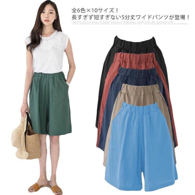 5分丈ワイドパンツ レディース ショートパンツ ワイドシルエット 体型カバー ハーフ丈レディースファッション ボトムス パンツ