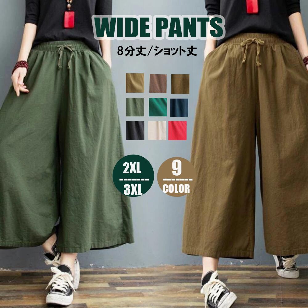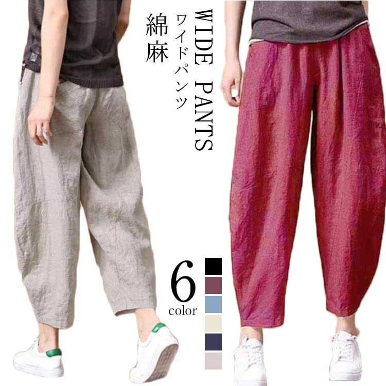 ワイドパンツ レディース ガウチョパンツ テーパードパンツ リネン サルエルパンツ ロングパンツ リラックスパンツ イージーパンツ 九分丈パンツ