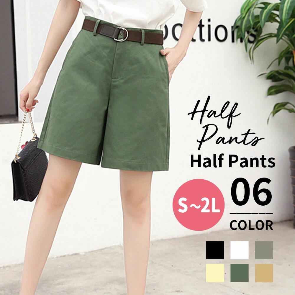 半ズボン ショーパン パンツ ショート丈 ひざ上 春夏 シンプル ナチュラル 着痩せ 美脚 ホワイト カーキ