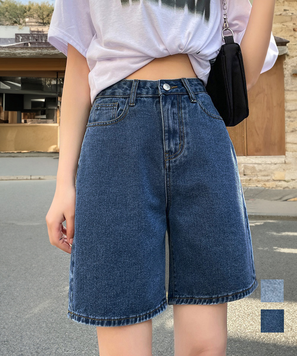 ハイウエスト カジュアルジーパン レディース 短パン 春秋夏 半ズボン着やせ 台形デニム 着回し ハーフパンツ Aライン