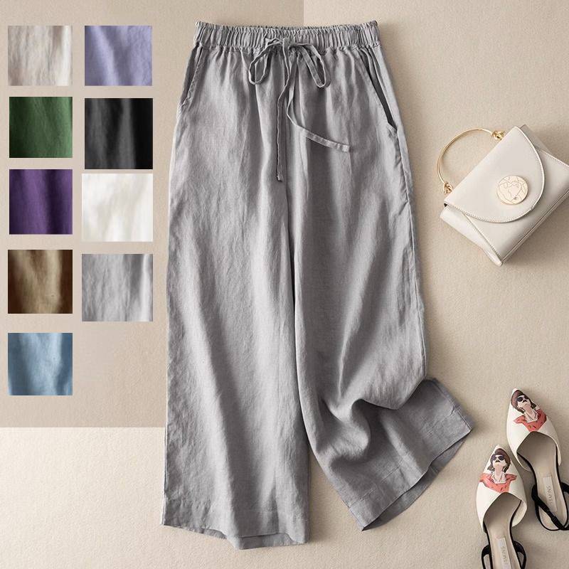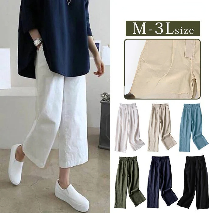 パンツ ワイドパンツ リネンパンツ レディース ボトムス 綿麻 リネン 9分丈 スカーチョ ガウチョパンツ 体型カバー 春 夏 無地 薄 涼しい リラックス ワイド ゆったり カジュアル 大きいサイ