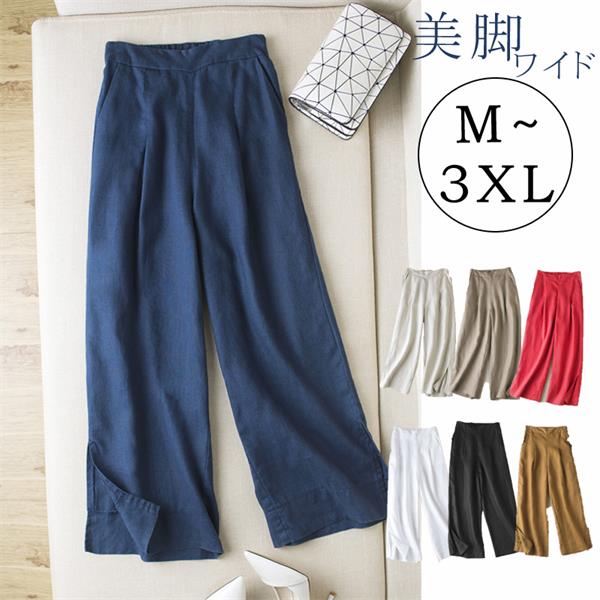 ワイドパンツ レディース おしゃれ 夏 秋 フレアパンツ ガウチョ 大人 カジュアル 20代30代40代50代 美シルエット 細見え リネンパンツ 綿麻