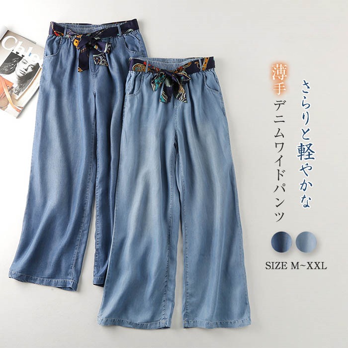 これから暑くなる季節にぴったり さらりと軽やかな薄手デニムワイドパンツレディースファッション ボトムス パンツ
