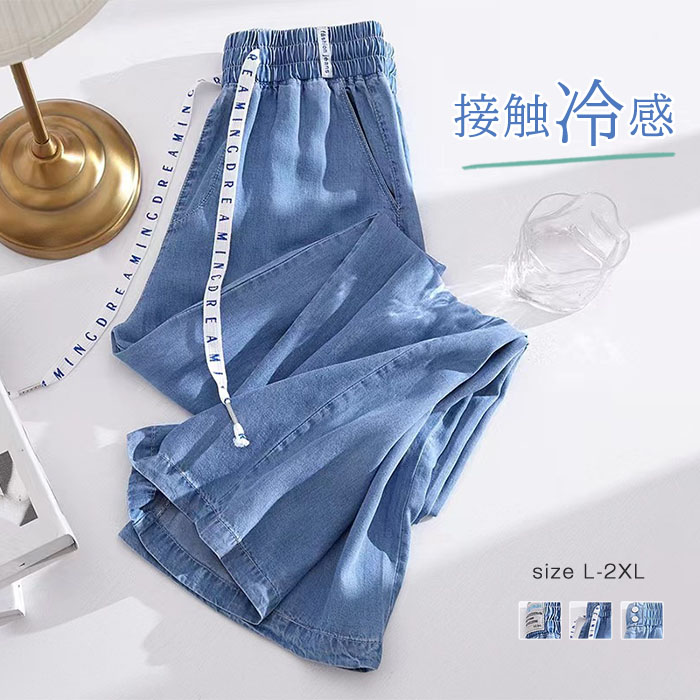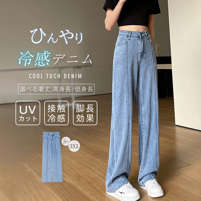 接触冷感で夏にも涼しく軽い これから暑くなる季節にぴったり さらりと軽やかな薄手デニムワイドパンツレディースファッション ボトムス パンツ