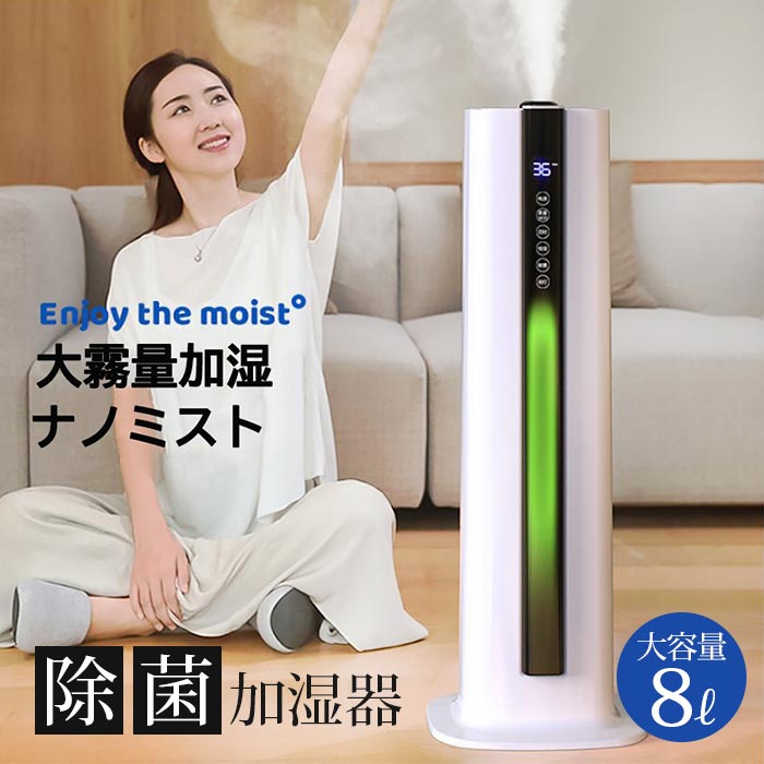 加湿器 大容量8L 40畳 超音波式加湿器アロマオイルディフューザー 空気清浄 水漏れしない型 湿度設定機能