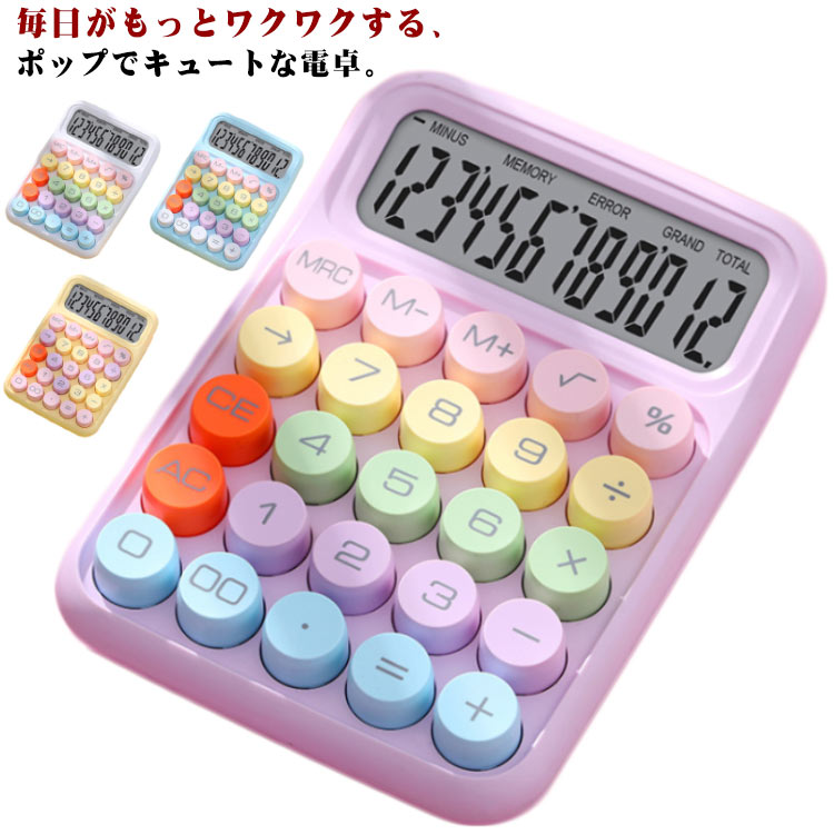 ラウンドボタン 電卓 持ち運び おしゃれ 事務用 かわいい 日常 基本 計算機家電 電卓 デジタル文具 電卓