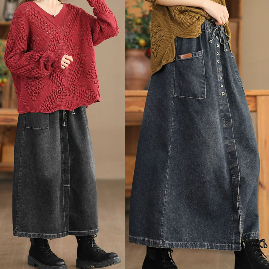 秋 デニムスカート デニム スカート レトロ調 デニムフレアスカート レディーススカート 森ガール クラシック クラシカル エスニック ボヘミアン Aライン ミディアム丈 膝丈 ひざ丈 ジーンズスカー