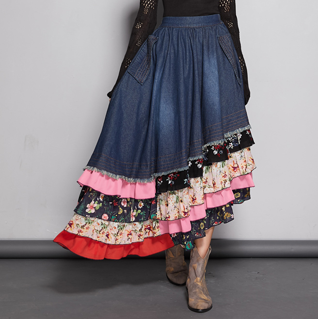 大人かわいい レディース デニム ティアードスカート ロング丈レディースファッション ボトムス スカート