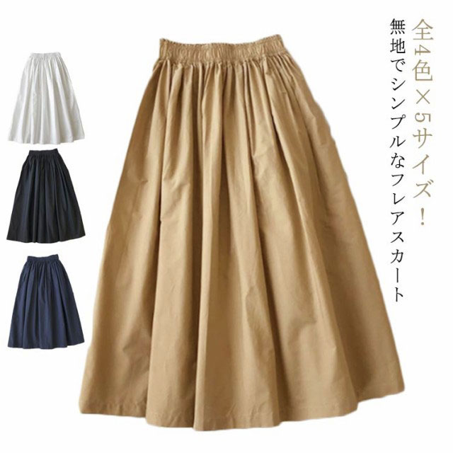 着瘦せ S~2XL 体型カバー ナチュラル 膝丈フレアスカートレディースファッション ボトムス スカート