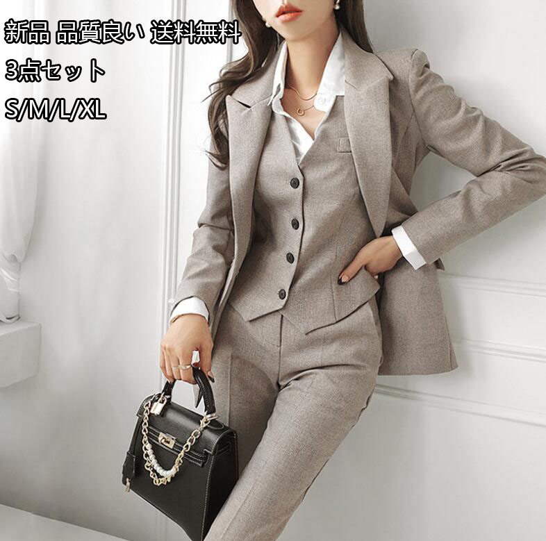 激安 パンツス一ツ 3点セット 無地 レディース ジャケット+ベスト+パンツ レディーススーツ S~ カジュアルスーツ オシャレスーツ 3ピーススーツ セットアップ
