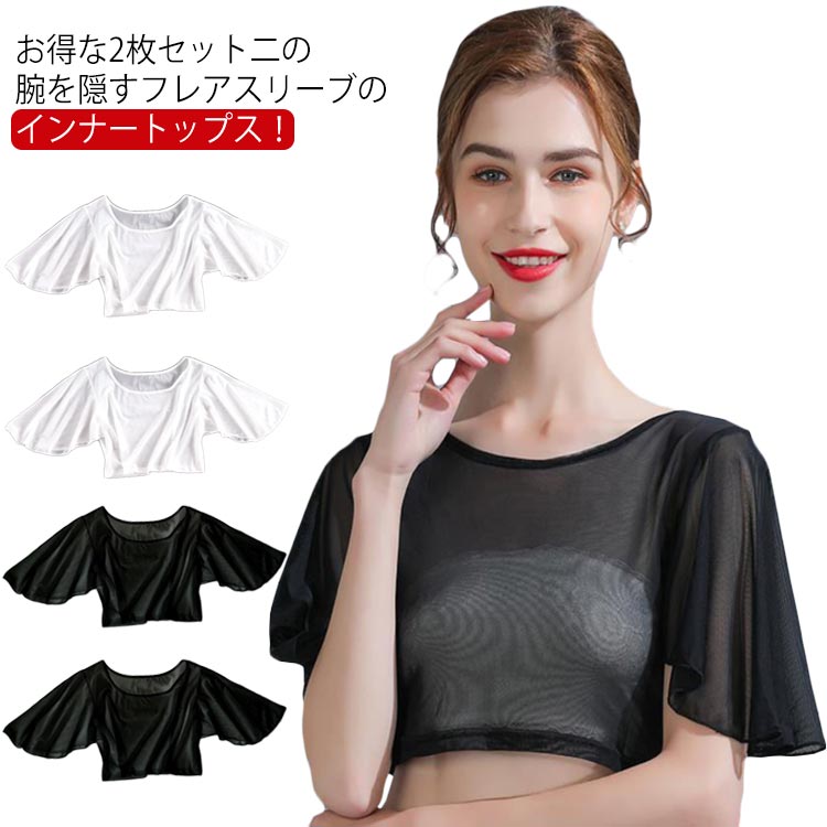 隠す 透け感 体型カバー ノースリーブ服用 フレアスリーブ パーティドレス 細見えレディースファッション トップス その他