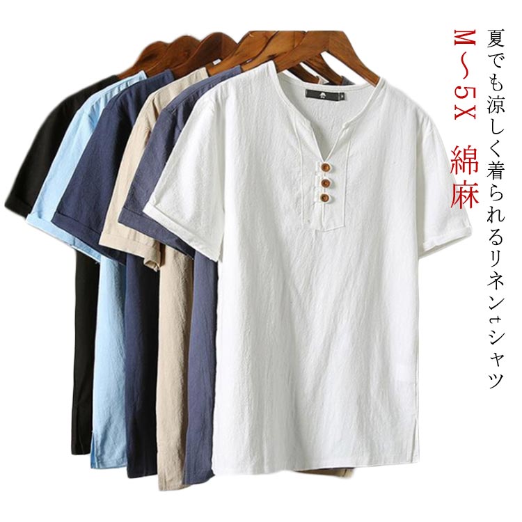 大人男性 M~5XL 綿麻tシャツ 体型カバー 涼しい 薄手 ナチュラルメンズファッション トップス Tシャツ カットソー