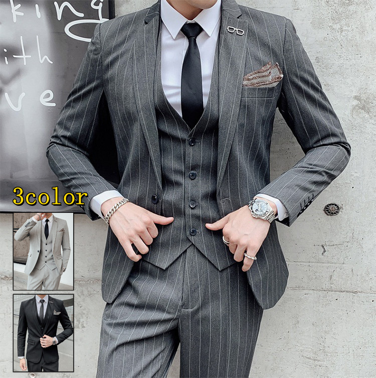 上下セット -5 スリム 春夏 スリーピーススーツ 紳士服 写真撮影 演出服 カラオケ衣装 30代 40代50代 60代 安い 全4色 ビジネススーツ メンズ スリーピース 無地