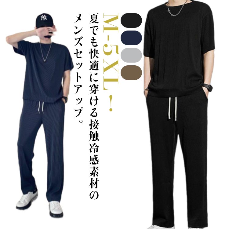 半袖 セットアップ メンズ 夏 夏服 春服 春夏 接触冷感 tシャツ 半袖 ワイドパンツ イージーパンツ 大きいサイズ スポーツウェア トレーニングウェア