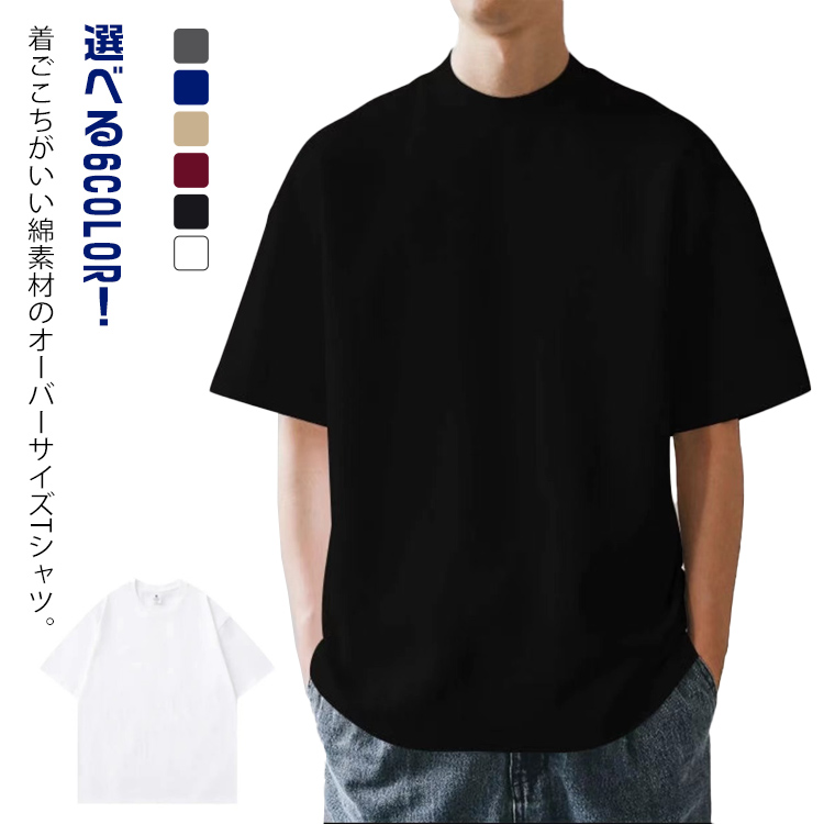 オーバーサイズ カットソー tシャツ シンプル クルーネック Tシャツ メンズ 無地 定番 ゆったり 半袖 メンズtシャツ コットンTシャツ カジュアル トップス 大きいサイズ 男女兼用 6色 綿