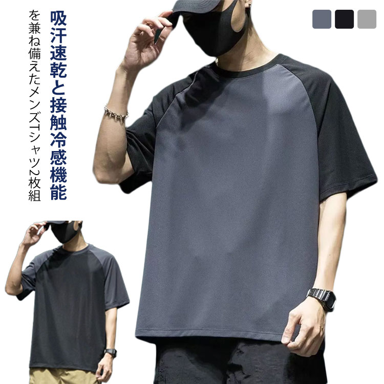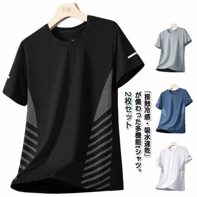 2枚セット ひんやり メンズ 半袖 部屋着 ドライTシャツ 接触冷感 涼しい Tシャツ 快適 部屋着 吸水速乾