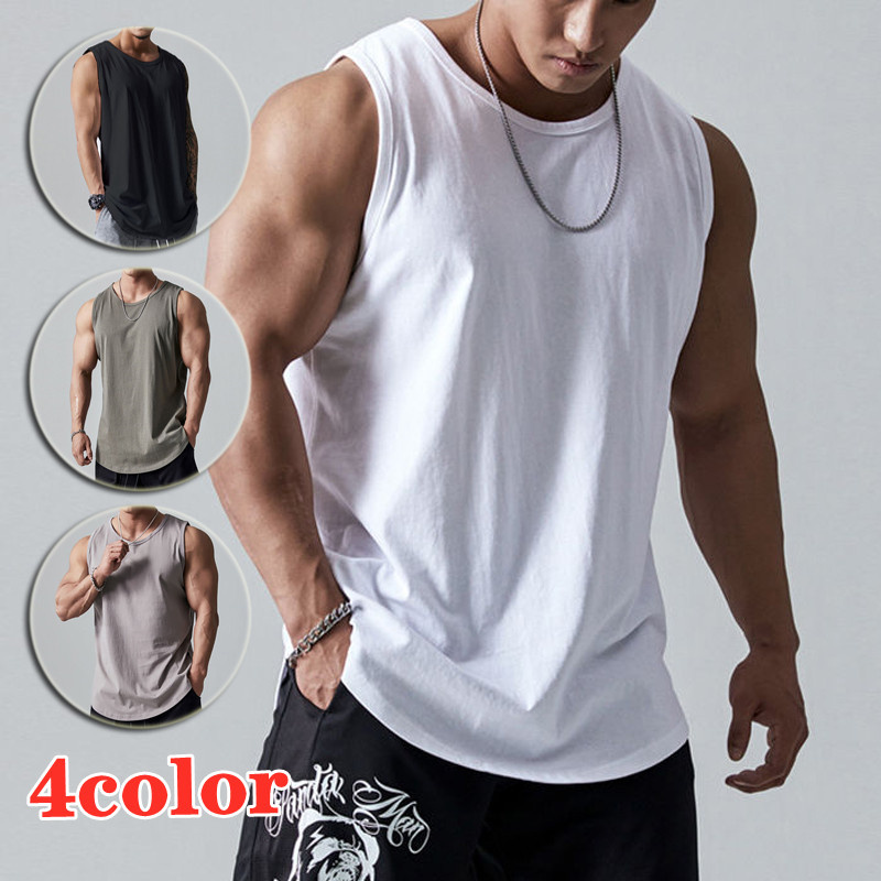 スポーツウェア フィットネス 筋トレ トレーニングトップス ランニングシャツ ビッグシルエット シャツ 3色 コットンシャツ ノースリーブ タンクトップ メンズ サマー カジュアル