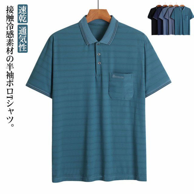 メンズ シャツ 冷感 半袖 ポロシャツ 涼しい 速乾 通気性 胸ポケット ストレッチ メッシュ生地 シニア 男性 紳士服 通勤 カジュアル スポーツ 夏物 全5色