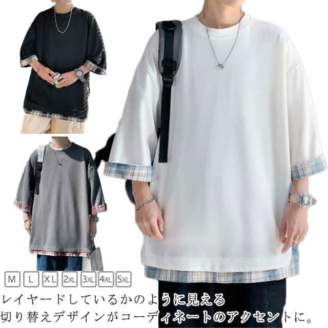 tシャツ メンズ 半袖 ビッグtシャツ オーバーサイズ 大人 重ね着風 レイヤード風 韓国服 春 夏