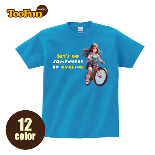 美少女アニメタッチのクロスバイクでサイクリングの愛好シャツです メンズファッション トップス シャツ カットソー
