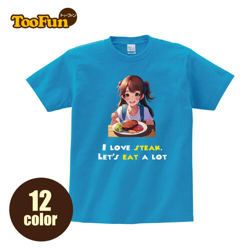 Tシャツ 半袖 ステーキお肉レストランジューシー萌萌え美少女かわいいアニメキャラ オリジナル デザイン 豊富なカラー 厚手 綿100% 人気 Tシャツ