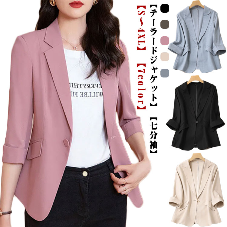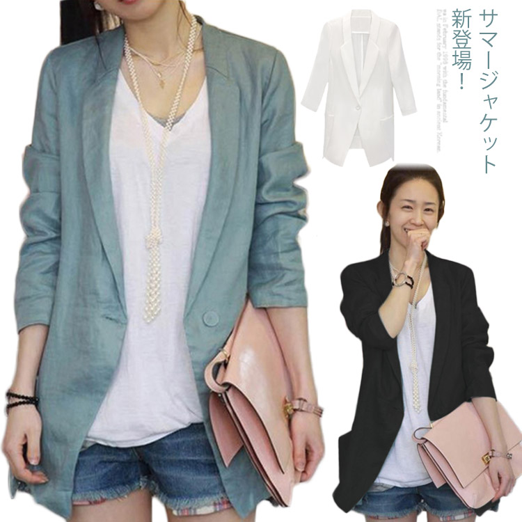 サマージャケット レディース テーラードジャケット リネン 7分袖 ミドル丈 無地 薄手 冷房対策 アウター トップス 春 夏 秋 2019春夏新作