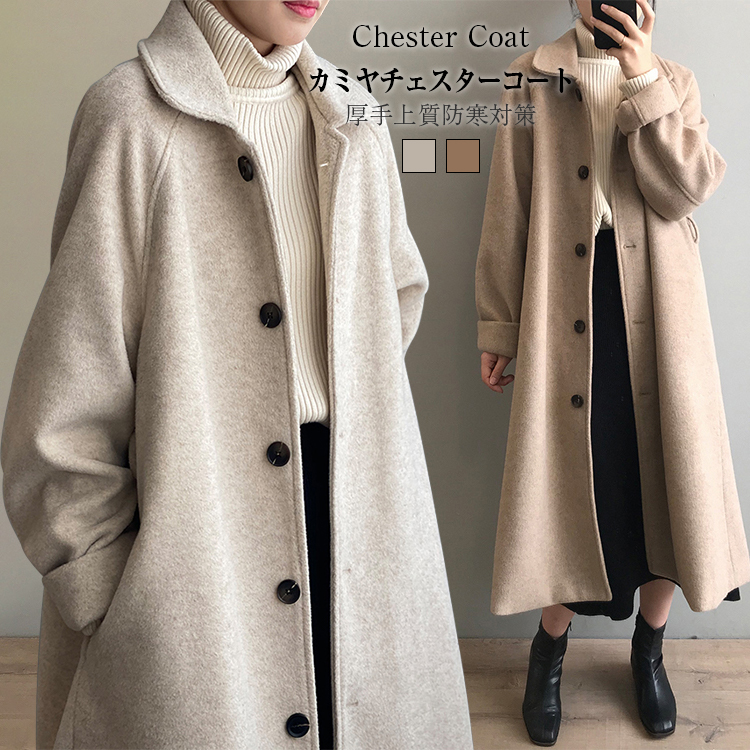 チェスターコート ロングコート アウター ポケット付 フロントボタン ロング丈 シンプルレディースファッション コート ジャケット
