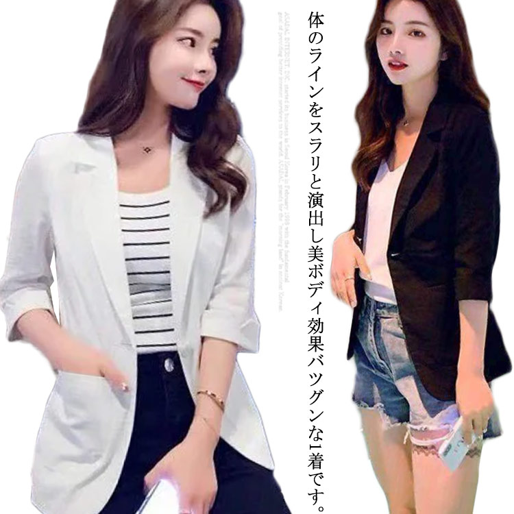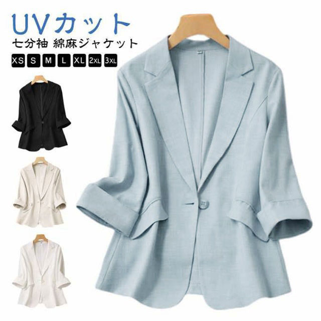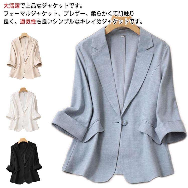 テーラードジャケット レディース 七分袖 サマージャケット シンプル OL オフィス カジュアル 上品 大きサイズ ゆったり ジャケット 薄手 春 夏 秋 アウター キレイめ