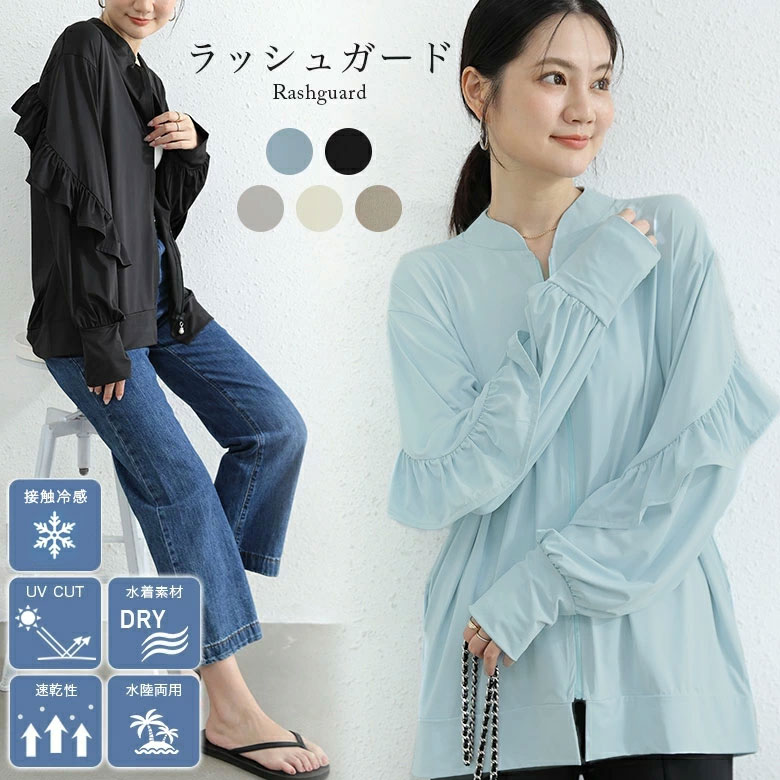 ☆単品で購入可能 水陸両用 ラッシュガードセット、UV対策 紫外線対策 ママ水着 足長効果レディースファッション コート ジャケット