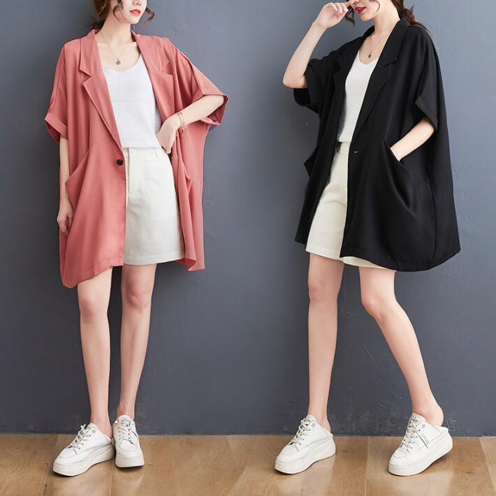ジャケットシャツ羽織りドルマン レディース 半袖 春夏 5分袖シフォン大きめ 大きいサイズ体型カバーゆったり前開き ロングシンプル涼しいカジュアル