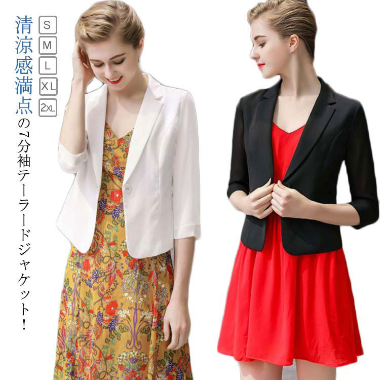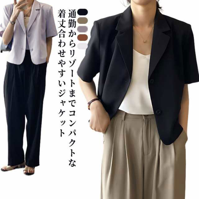 アウター ショート丈 ゆったり レディース 薄手 オフィス 春夏 ジャケット 半袖 テーラードジャケット