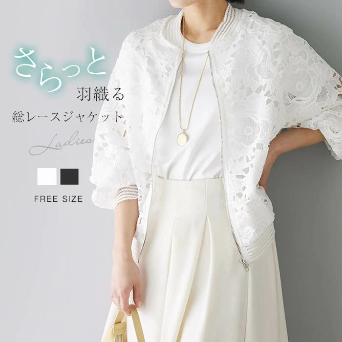ジャケット レディース 春 夏 レース 透け感 ライトアウター ブルゾン 軽アウター 長袖 UVカット 花柄 刺繡 長袖 紫外線対策 日焼け防止 冷房対策 女性用 大人 女の子 ママ 大きいサイズ