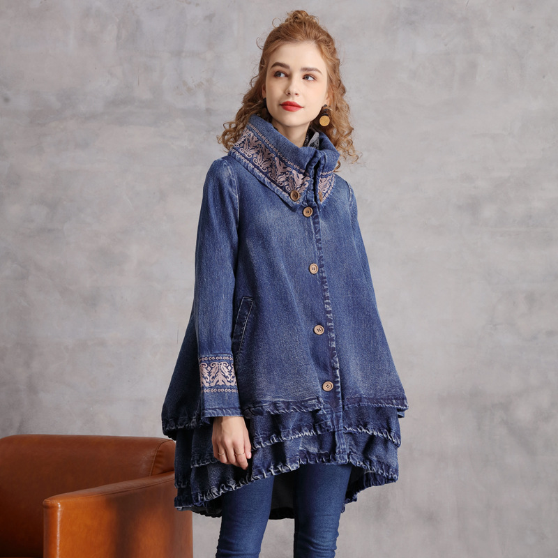 大人かわいい レディースデニムコート 長袖 ミディアム丈 前ボタンレディースファッション コート ジャケット