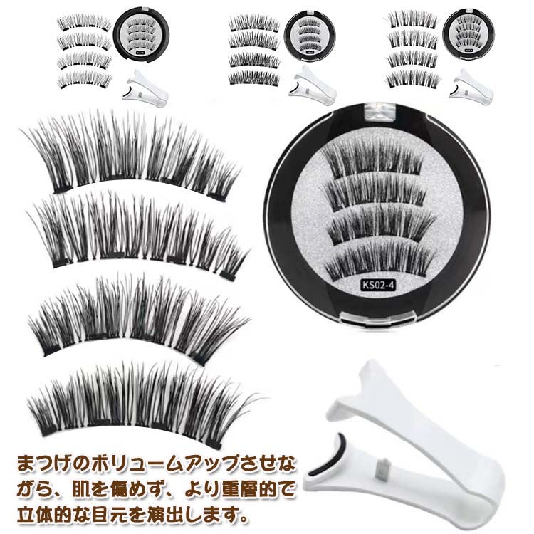 つけまつ毛 磁気まつ毛 3つけまつげ 付け睫毛 つけま 4タイプ入り 磁気 磁石 接着剤なし 長持ち