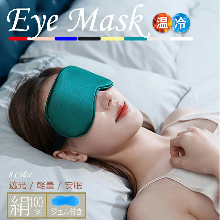 安眠 シルク100% 遮光 冷感 温熱 ジェル 温冷 両用 クール ホット ひんやり 冷却 冷たい 温かい 涼しい アイス睡眠 快眠 眼精疲労 疲れ目 かわいい シンプル 女性 男性 キャンプ 旅行用