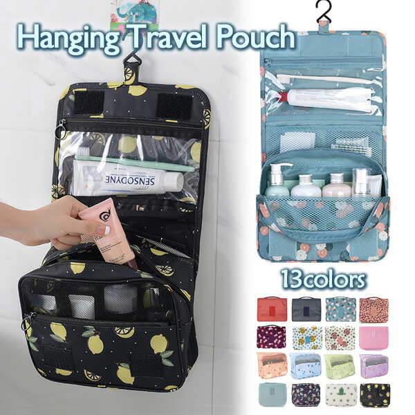☆旅行 ポーチフック付き掛けられで便利旅行の洗面具やコスメがすっきり収納 ☆旅先での狭い洗面所でも荷物が散らからず便利♪